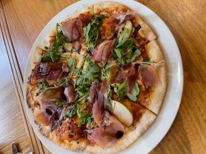 Iniciamos con una buena pizza de antojo, Pizza ferrara $220 fue la elegida, y es que sobresale a las recetas tradicionales, ésta lleva prosciutto, arúgula, manzana caramelizada y un serpentín de reducción de vinagre balsámico. Con una masa muy ligera, muy bien aireada y con mucho trabajo de cocina. Con un queso que hacía hilos al levantar cada triángulo, un prosciutto cortado finamente que se deshacía en boca. Lo dulce sobre lo salado le dan gran personalidad a esta pizza. Gran entrada.