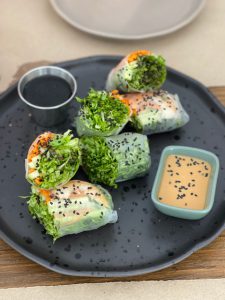 Iniciamos, en familia claro, con unos rollos vietnamitas $124 de puro antojo los pedimos porque íbamos tras la pizza, pero… Son estos rollos confeccionados en hoja de arroz, rellenos de lechuga, cebollín, pepino, zanahoria y camarón. Vienen 6, medias, piezas y se acompañan con dos salsitas de lo mas bueno. Una de soya con jengibre liy otra de cacahuate que es mi favorita. El día era caluroso y esta entrada fue de los más fresco y rico para iniciar la jornada.