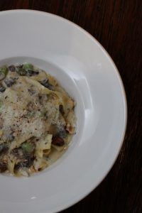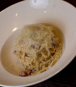 Yo tenía antojo de Linguine Carbonara $128 que es esta pasta que con la que se