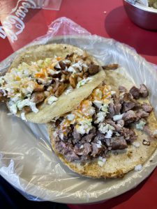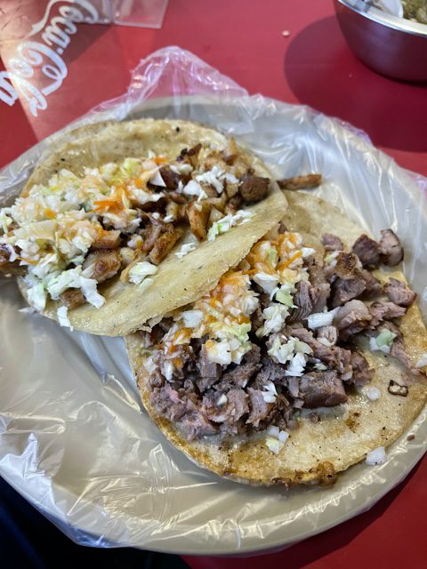 No podía dejar pasar un taco de tripa asada $25 tienen una textura muy diferente a la frita que solo cruje todo al morderla. Tiene algo así como un “dente” con ese sabor característico que le da el carbón a este platillo. Es imperdible.