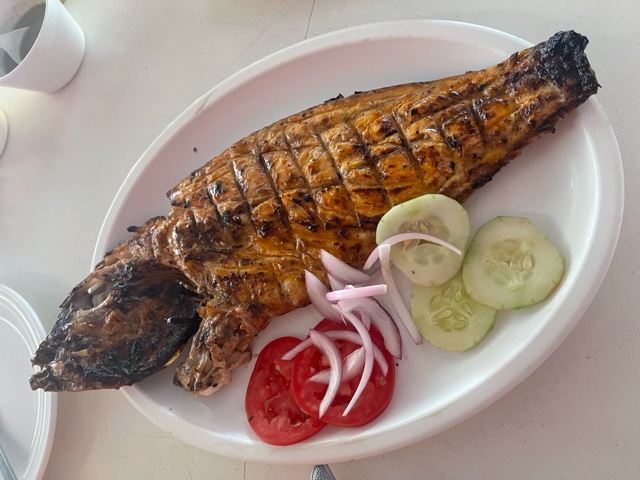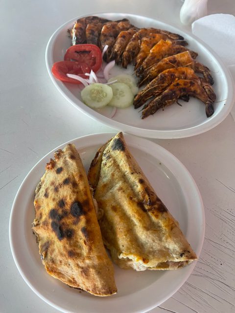 Pescado zarandeado $200 (1/2 kilo) lo preparan con pargo, aunque también, si lo piden lo pueden hacer con robalo. Es un verdadero manjar, llega con la humedad adecuada y sus doraditos en los bordes, que en silencio peleas con tu acompañante, lo campaña con unas rodajas de jitomate, pepino y cebolla para, con las tortillas recién hechas, grandes y pesadas, te mates solo armando el mejor de tus tacos en compañía de su salsita verde de aguachile. El mejor pescado zarandeado que he probado.